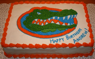 On Tuesday, I found out a friend of a friend wanted a Gators cake to be delivered at 8am on Thursday morning. For people who may not be familiar with cake decorating, this is a very rushed order – especially when you have a day job so you can’t bake until you get home in the evening. I baked the cake on Tuesday night while Elise made all the buttercream we’d need. And on Wednesday evening, we decorated the cake!