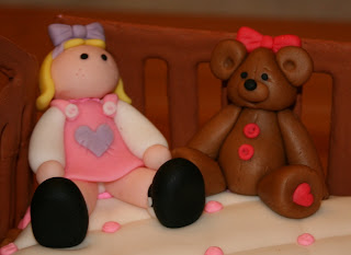 As I mentioned in a previous post, my cousin April had already asked me to do a baby shower cake and wanted to pick it up on Monday evening. Since the baby shower wasn’t until Wednesday, all the baking and decorating occurred on Sunday so the cake would still be fresh at the shower. We designed the cake based on a cake I’d seen in an American Cake Decorating magazine – a cute baby’s crib! Before I left for Christmas vacation, I had prepared the crib walls using what’s called “run sugar” because they need plenty of time to dry. When we returned to Gainesville after the holidays, I made a fondant teddy bear and a doll to sit on the bed. I was feeling ambitious so I also made baby blocks that read “welcome baby.” The baby blocks alone took me about 5 hours…let’s just say I won’t be doing that again in the future unless someone makes it really worth my time! On Sunday evening, Elise and I constructed and decorated the cake. For our first cake together, I think we did pretty well…but you can decide for yourself: