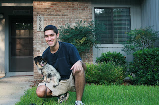 And last, but certainly not least is OUR baby!! Here’s one of my favorite pictures of her and Adam. This was the day we got her. We’d gone to get her at the pound, then went to PetSmart to get all her goodies, then to Nature Pets to get some special treats, and finally home. She was absolutely pooped after so many activities! This was her very first time in the yard. For those who knew her back then, you know she was so timid and scared of everything. But look at this picture! She looks so happy and at home! She must have known she could trust us. 🙂 Our little cutie…
