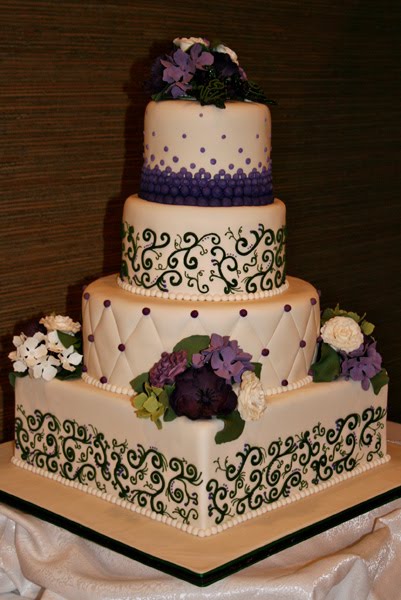 3. Beautiful cake! I just love the pleating combined with the more detailed layers. And I love the purple! Great job, Mel!