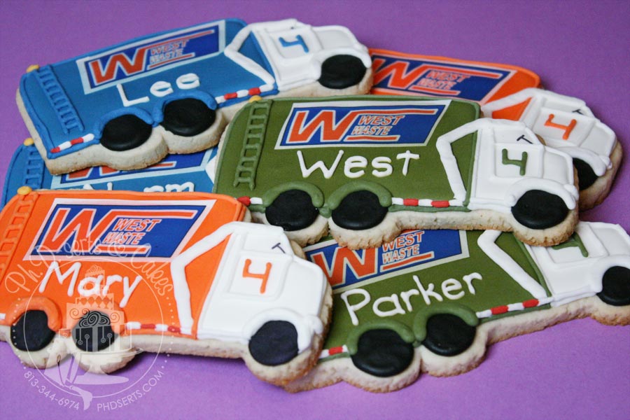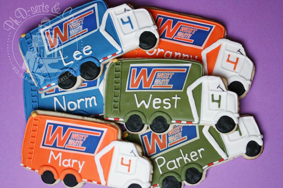 West’s Mom also ordered some garbage truck cookie favors for each of the party attendees. They were mini versions of the cake and were personalized with each person’s name.