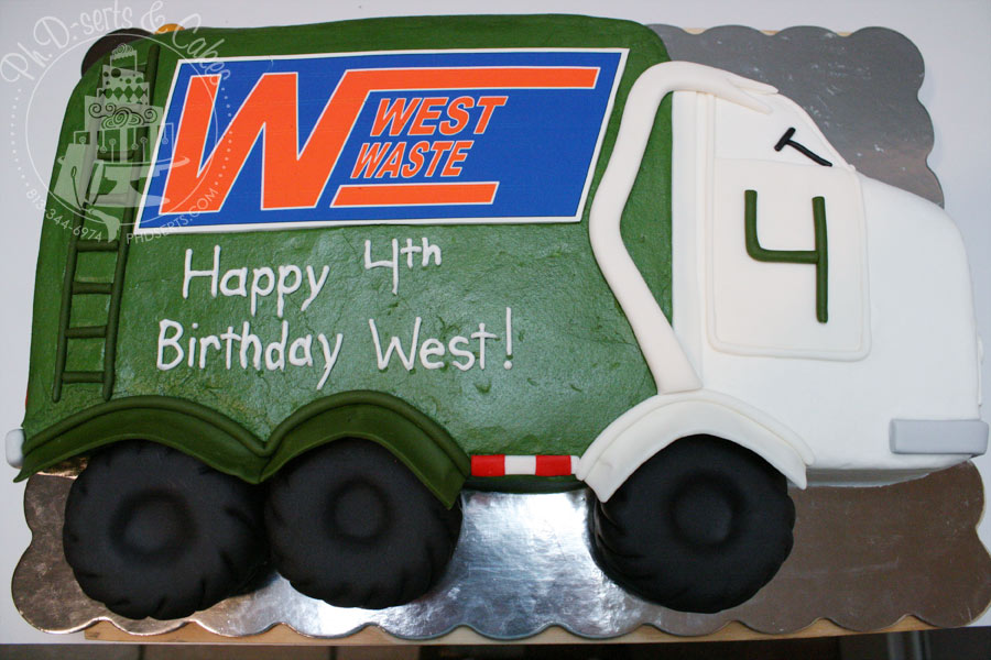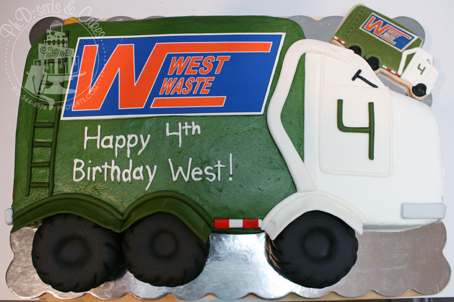 And you see that awesome logo “West Waste”? West’s father made that logo, resembling their local trash pick-up company, to coordinate with West’s Halloween costume last year. So the logo was a MUST on the cake!