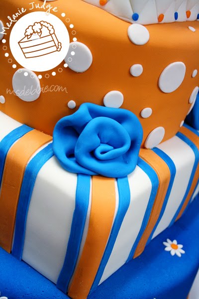 The third tier had orange & blue stripes, and the bottom tier had cute little daisies.