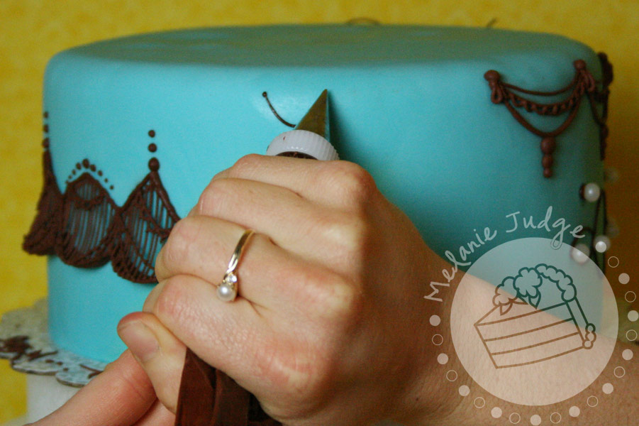 I’m using the same cake dummy from the last few tutorials, so just ignore the extra stringwork designs you see in the photos.