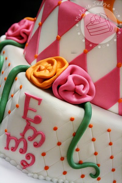 What a fun cake! I have yet to make ribbon roses yet but they do look like they'd be pretty simple to make.