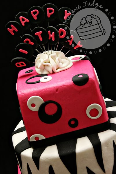 Zebra print must be “in” right now! We did 3 cakes with zebra print in April (this one, the monkey cake, and the brightly colored sweet 16 cake).