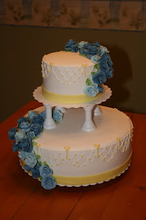 The only cake we made in this class was a “wedding cake.” For this cake, we had to pre-make a bunch of fondant roses and then decorate the cake in the last class. This cake was huge – the bottom tier is 12 inches wide and the top is 6 inches wide! It was so heavy! The cake was supposed to be Red Velvet but I ran out of red food coloring so it came out more like a reddish-brown velvet! haha! Oh well!