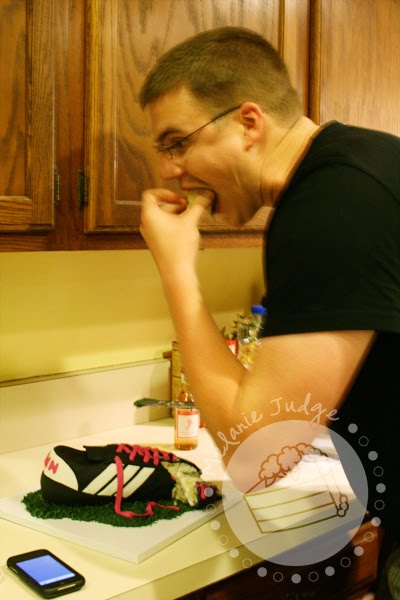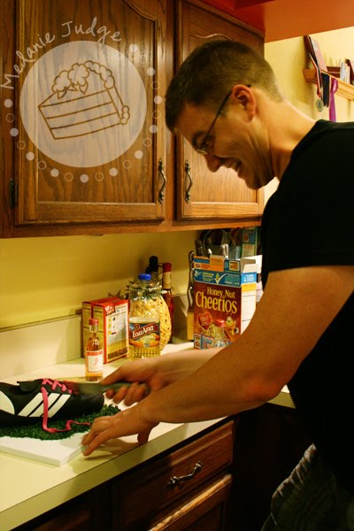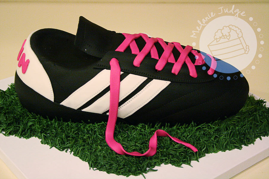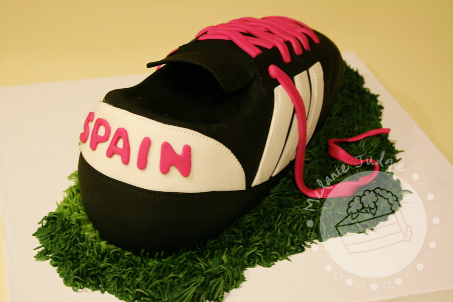 Last week, for fun and for part of my audition tape to the new Cake Boss show on TLC, I made a soccer cleat cake! Nothing fancy…just a shoe with some Adidas stripes down the side.